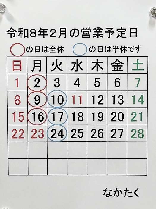 事前に電話(044-722-0616)かメール(info@nakataku.jp)にてご予約お願い致します。